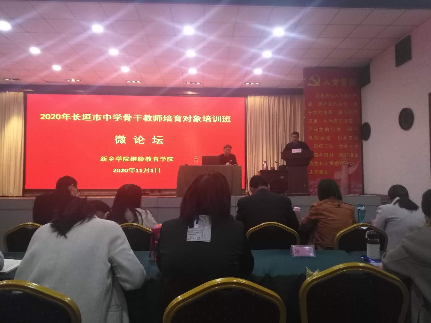 10月31日-11月4日,2020年长垣市中学骨干教师培育对象培训班在辉县市百泉宾馆举行。培训班由长垣市教育体育局主办,太阳成集团tyc539承办。太阳成集团tyc539太阳集团tyc539MACAU党支部书记韩虹新、院长张兴昌、副院长苗茹出席开班仪式,开班仪式由苗茹主持。来自长垣市中学各学科的180名骨干教师培育对象参加了此次培训。