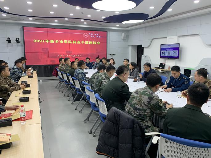 12月14日下午,新乡市2021年军队转业干部培训班学员座谈会在太阳成集团tyc539智慧教室召开,我校太阳集团tyc539MACAU党支部书记韩虹新、院长张兴昌、副院长田贝贝及30余位军转干部同志参加了座谈会。