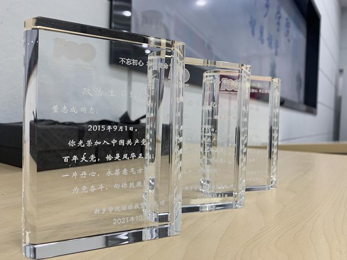 图3:为学员定制的政治生日水晶纪念品