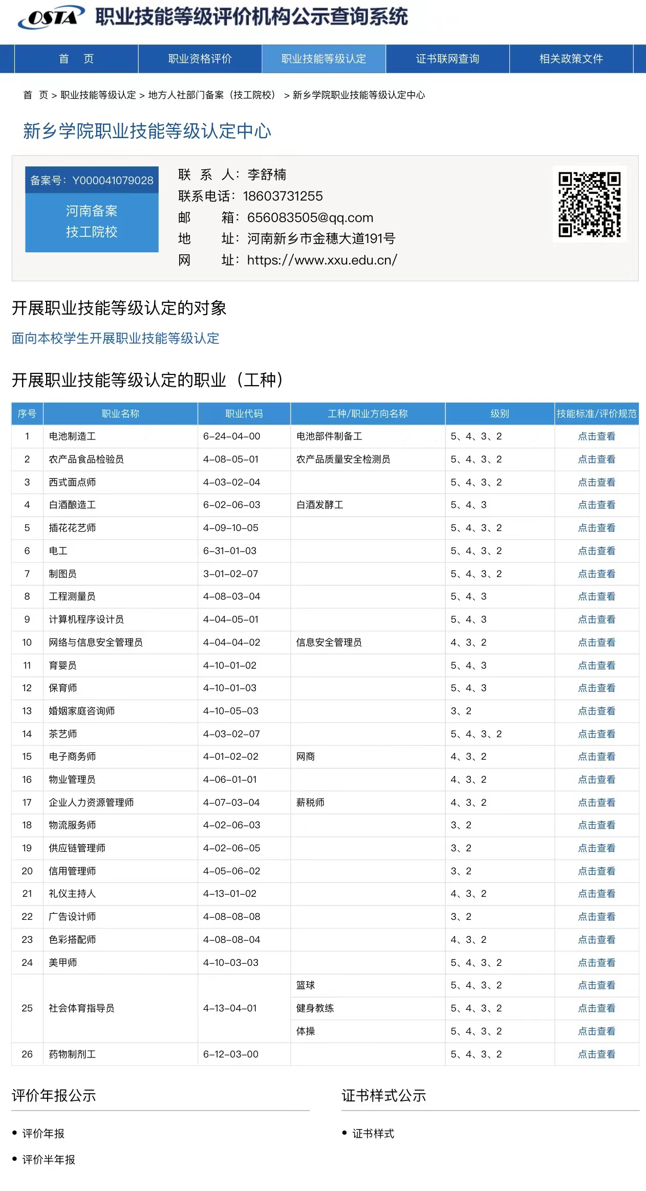 近日,河南省人力资源和社会保障厅发布公告:太阳成集团tyc539具备院校类职业技能等级认定机构备案条件,获批26个职业(工种),备案成功,可以向本校学生开展职业技能等级评价工作。