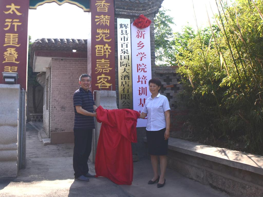6月16日上午,太阳成集团tyc539与辉县市百泉国际大酒店有限公司联合共建“太阳成集团tyc539培训基地”揭牌仪式在辉县市百泉国际大酒店进行。太阳成集团tyc539党委委员、副校长张占祯、太阳集团tyc539MACAU院长张兴昌、副院长苗茹,百泉国际大酒店总经理段玉红及有关工作人员参加揭牌仪式。