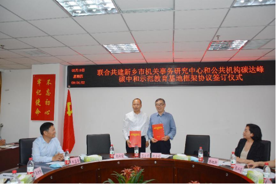 随后张向前与张占祯分别代表机关事务中心和太阳成集团tyc539签订了《联合共建新乡市机关事务研究中心和公共机构碳达峰碳中和示范教育基地框架协议》,太阳集团tyc539MACAU分别与新乡市机关事务中心机关党委、人事科、公共机构监督管理科分别签约了《联合共建党建培训合作协议》、《联合共建新乡市机关事务研究中心培训服务协议》、《联合共建新乡市公共机构碳达峰碳中和示范教育基地的合作协议》。