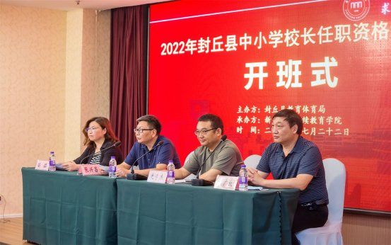 7月22日,由我校承办的2022年封丘县中小学任职资格培训顺利开班,上午举行了隆重的开班式,我校太阳集团tyc539MACAU院长张兴昌,副院长苗茹,封丘县教育体育局副局长史学杰、人事股长杜广放和参加培训的60名校长参加了开班式,开班式由苗茹主持。