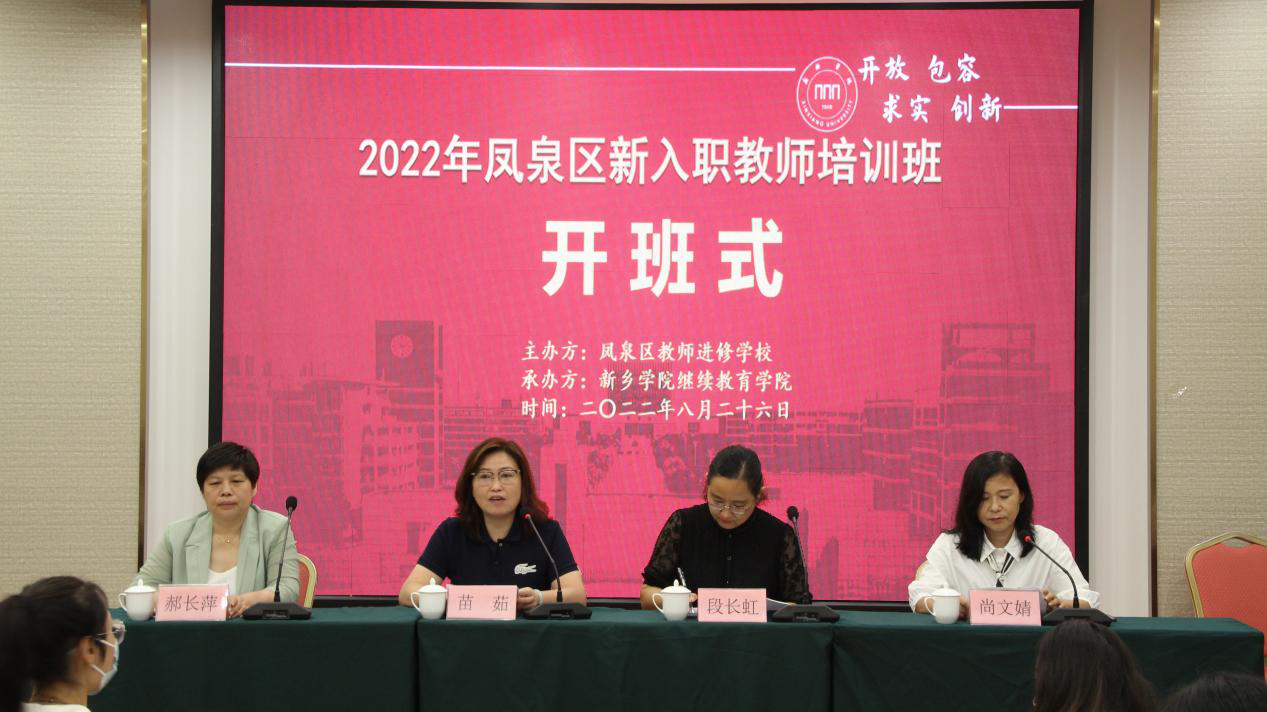 为深入贯彻实施科教兴市和人才强市战略,提升凤泉区新入职教师的工作水平,推进教育事业科学发展,应凤泉区教育体育局委托,8月26日,由我校承办的2022年凤泉区新入职教师培训班在太阳成集团tyc539培训基地顺利开班,上午举行了隆重的开班仪式。凤泉区教育体育局党组书记、局长段长虹,党组副书记、副局长尚文婧,教研室主任、进修校负责人郝长萍,我校太阳集团tyc539MACAU副院长苗茹和参加培训的50名新入职教师出席了开班式。