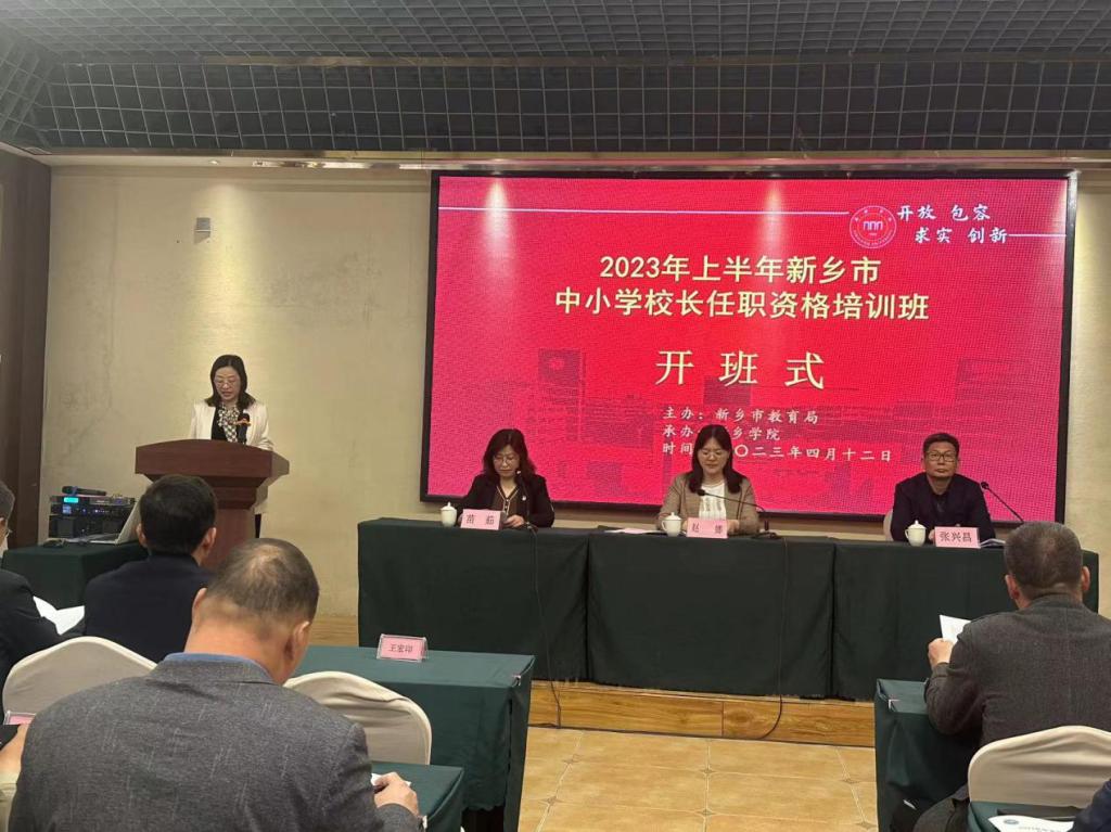 4月12日上午,2023年上半年新乡市中小学校长任职资格培训班在太阳成集团tyc539培训基地举行了隆重的开班仪式,新乡市教育局师训科科长赵娜,太阳成集团tyc539太阳集团tyc539MACAU院长张兴昌、副院长苗茹以及来自四区八县新任职的87名中小学校长出席了开班式。开班典礼由苗茹主持。