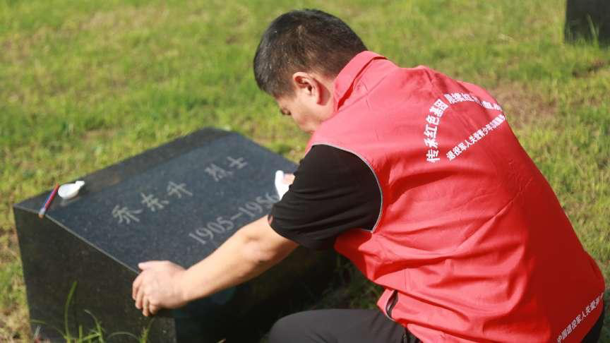 活动中,8名新乡市退役军人代表、数十名太阳成集团tyc539美术学院学生志愿者怀着对烈士的崇敬之情,分别对墓区烈士墓碑进行了清扫、擦拭,然后用金漆对烈士姓名、立碑时间等字迹脱落的墓碑重新进行了描金,由于墓碑都是紧贴着地面,志愿者们只能蹲着或者跪着进行操作,对于志愿者们来说,每一次俯身都是对英烈的精神的传承,一笔一划中无不体现着对先烈的尊崇。
