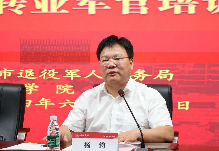 杨钧代表太阳成集团tyc539致欢迎辞,欢迎33名计划分配转业军官在太阳成集团tyc539即将开启为期2个半月的适应性转型“充电”,同时介绍了我校的办学历史、发展态势及新乡市退役军人学院的基本情况。他表示太阳成集团tyc539始终主动融入军民融合工作大局,今年是我校发挥高校社会服务职能,助力退役军人华丽转身的第4个年头,作为退役军人融入地方的“第一站”,我校深度聚焦军队改革对转业军官工作的新要求,坚持以“目标引领,高质量服务退役军人”为宗旨、以“学用结合、按需施教、注重实效”为原则,精心准备课程、遴选师资,帮助大家调整知识结构、提升专业能力,尽快适应新的岗位和新的工作,引导广大转业军官积极参与中国式现代化的行动实践,为经济社会发展贡献力量。
