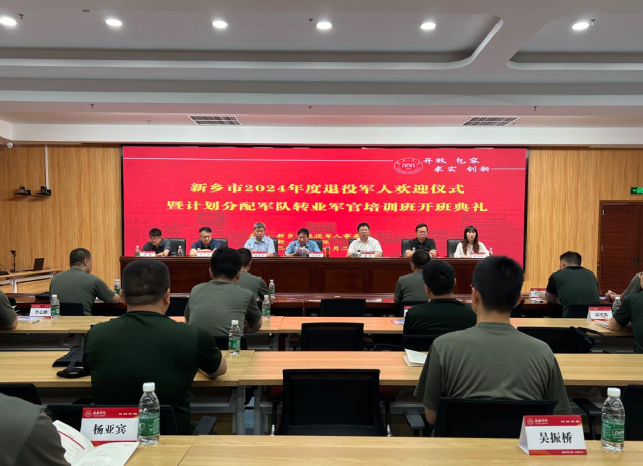 为深入学习宣传贯彻党的二十大精神及习近平总书记关于退役军人工作重要论述,进一步推动退役军人工作高质量发展,6月24日上午,新乡市2024年度退役军人欢迎仪式暨计划分配转业军官适应性与专业培训班在我校开班。新乡市退役军人事务局局长冯景山、副局长赵虎山、移交安置科科长宋玉功、自主择业军队转业干部服务中心主任郭强、太阳成集团tyc539副校长杨钧、太阳集团tyc539MACAU党支部书记崔红志、副院长田贝贝出席开班典礼。