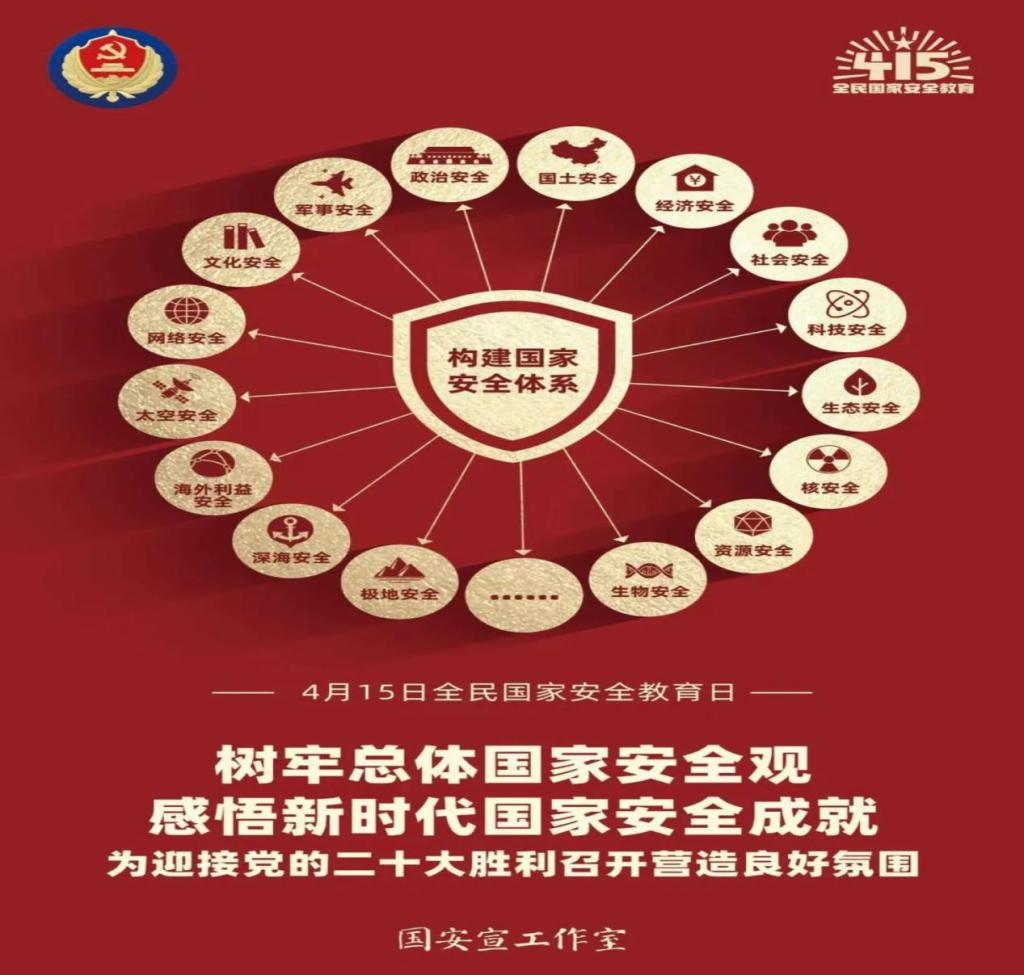 今年的4月15日是第七个全民国家安全教育日。今年的活动主题是“树牢总体国家安全观,感悟新时代国家安全成就,为迎接党的二十大胜利召开营造良好氛围”。