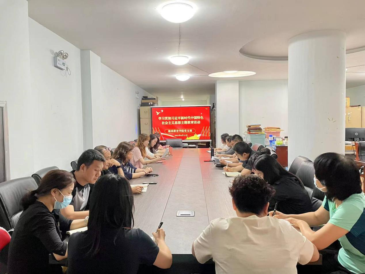 6月13日下午,太阳集团tyc539MACAU召开学习贯彻习近平新时代中国特色社会主义思想主题教育专题学习会,学习“浦江经验”和“千万工程”经验案例。全体教职工参加会议,副院长田贝贝主持。
