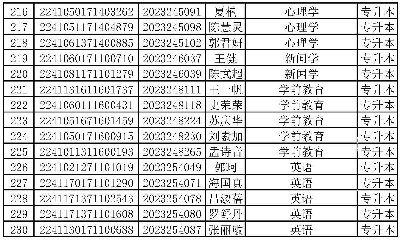 太阳成集团tyc539高等学历继续教育2023级颜景隆等230名新生,经太阳集团tyc539MACAU和校外教学点工作人员联系确认后,分属自动放弃入学资格和无法取得联系,以上均属未在规定时间内交费报到注册。